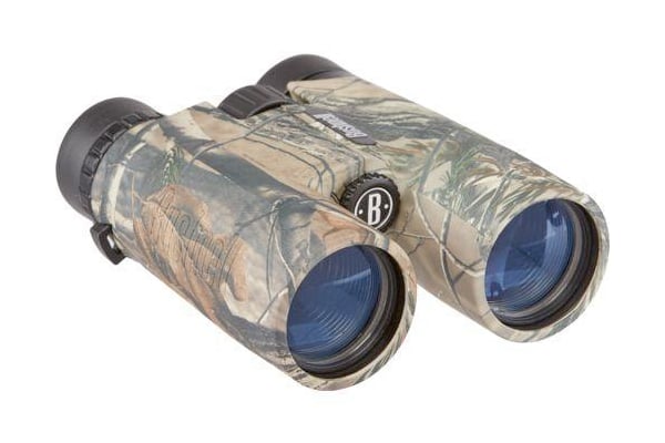 The last thing you want is for your gear to give away your position. With their Realtree camo finish, the Bushnell 10 x 42 Realtree Roof Prism Binoculars let you stay on the lookout for your prey while keeping you concealed from view. Storm clouds gathering? No worries ? these binoculars are both waterproof and fog proof, so you can stay in your stand or blind as long as you need.