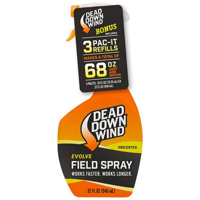 Dead Down Wind Field Spray features advanced enzyme technology to eliminate a broad spectrum of odors that can attach to your skin, clothing and hunting gear.