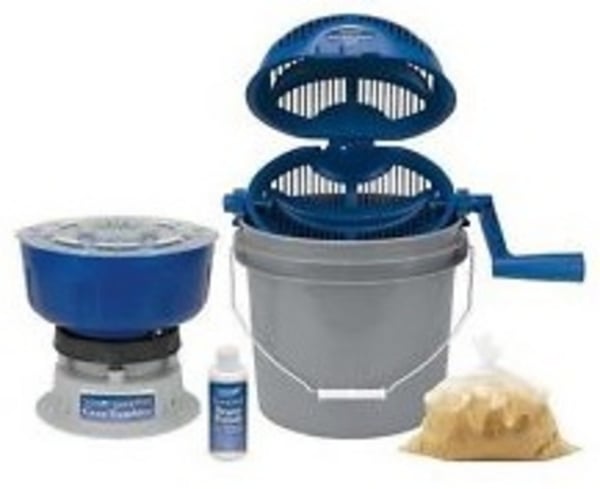 The Frankford Arsena®l Case Tumbler provides a quick, easy and economical means to clean your brass.Used in conjunction with the FrankFord Arsenal walnut and corn cob media, the Quick-N-EZ Tumbler removes fouling, Lube and oxidation quickly and conveniently. It will hold up to 600 9mm or 350 .223 cases. The Kit includes Quick-N-EZ™ Case Tumbler, Quick-N-EZ™ Rotary Media Seperator, 4 oz Brass polish, 3 lb Cleaning Media and a Plastic Bucket.