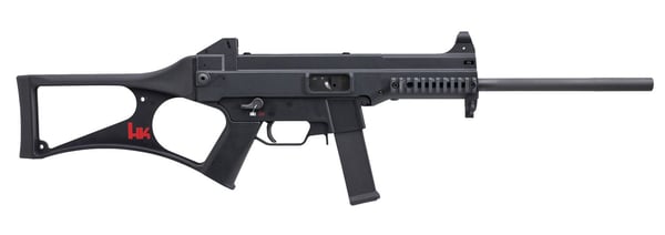 Derived from the HK UMP submachine gun, the USC is a civilian utility carbine that is constructed of tough, lightweight, corrosion-proof polymer. Matched with a simple and ultra-reliable blowback operating system, the HK USC is a radical departure from traditional firearms designs. The skeletonized buttstock is capped with a comfortable rubber cheek rest and recoil pad, while the web of the pistol grip is open for a comfortable handhold. The receiver features molded-in hard points for mounting accessories, adjustable rear sight and ambidextrous safety/selector lever. The USC also utilizes a cold-hammer forged target hammer barrel, oversized trigger guard and polymer magazine. This model has a 16" barrel, black finish and comes with a 10-round magazine.