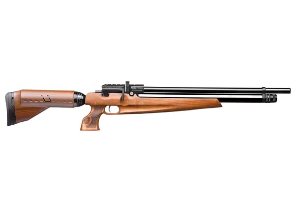 Each Pitbull features Kral’s sculpted Turkish walnut stock, with a checkered grip, grooved handholds, and an adjustable buttpad. Each PCP includes 2 rotating magazines, an 11mm Dovetail/Weaver Picatinny optics rail, and a 2.5” Picatinny accessory rail. If that wasn’t enough, the fully shrouded barrel muzzles this PCP’s bark for a quieter backyard target shooting and small game hunting experience.