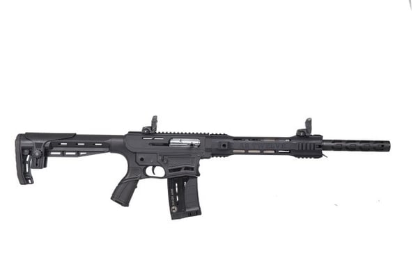 Introducing the latest iteration of the AR-12 shotgun from Panzer Arms of Turkey. This cutting-edge semi-automatic, gas-operated shotgun combines the sleek design and functionality of an AR15 rifle. The AR 12 shotgun is crafted to cater to a wide range of needs, serving as a versatile firearm for tactical applications, home defense, hunting, and sport shooting enthusiasts. Equipped with a detachable front sight and a detachable carry handle featuring a rear sight, customization and adaptability are at your fingertips. This shotgun is chambered for 3" shells and features a 20" barrel, accompanied by a manual safety for added control. Meticulously designed with a focus on tactical utility, this shotgun ensures exceptional performance and enduring durability to meet the demands of any situation.