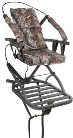 The Summit Cobra Sd Climbing Treestand Has An Open Front. It Is 20 inches By 36 inches. It Is 18 pounds. There Is a 300 Pound Weight Limit.
