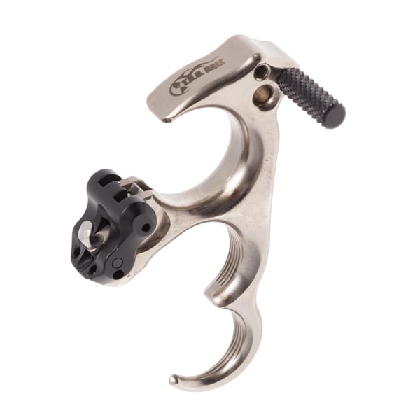 The TruBall HBC features Truball's very popular, supreme head and micro adjustable speed dial. The release handle differences include a taper that is more drastic and starts higher and closer to the center of the release, allowing the tip of the last finger to be ergonomically positioned. The smooth index finger location allows the release to spin or pivot on the index finger. The HBC has incorporated a slightly heavier groove track on the second, third and fourth fingers, providing more grip and added control. The third finger on the three finger models and the fourth finger on the four finger models has been moved forward for increased leverage and increased contact with the handle allowing for quicker and smoother shot sequences. The hook on the end, a subtle sweep of the end of the handle keeps the fingers nice and tight to the release and makes it feel like your fingers are stable and in their natural and necessary positions.