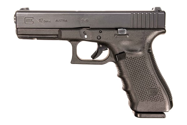 The Modular Back Strap design of the GLOCK 17 Gen4 allows one to easily customize its grip to add comfort, regardless of the shooter's hand size. The surface of the frame features the new Gen4 rough textured profile. Internally, the new GLOCK dual recoil spring assembly substantially reduces the wear and tear on the system. A reversible enlarged magazine catch, changeable at user level accommodates left and right-handed operators.