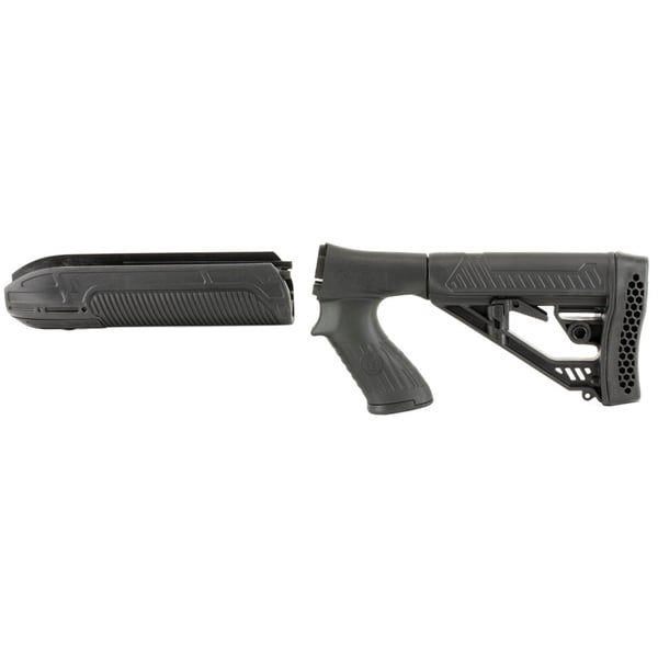 The Adaptive Tactical Forend and M4-Style Stock for Remington Shotguns is optimized for pump shotguns. The advanced design features and high-impact polymer construction of the EX Performance Adjustable Stock and Forend make it an ideal choice when upgrading your Remington 870 12g pump shotgun. The EX Performance Forend features a 2 inch picatinny rail concealed under the nose cap. Uncovered it's ideal for attaching tactical accessories like lasers or lights. The EX Performance M4-style Stock with pistol grip features an easy-to-reach rapid adjust lever for custom length-of-pull, and includes an integrated QD swivel attachment and molded in non-rust standard sling swivel attachment. Durable polymer construction with non-slip vented rubber recoil pad, oversized extra strength adjustment pin, and sleek industrial design.
