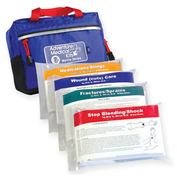 The Marine 400 is intended for coastal cruising on vessels carrying up to six people. Upgrades from the Marine 300 include: CPR Face Shield, triangular bandage, sterile eye wash, as well as larger quantities of medications and wound care items.