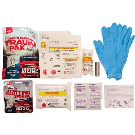 Tactical professionals know that excessive equipment only gets in the way in an emergency. With that in mind, the Trauma Pak with QuikClot is designed to stop bleeding and control serious trauma at the scene so more advanced care can be sought later. Packed in a tough, waterproof pouch sized to fit in any pocket, the Trauma Pak with QuikClot is easy to deploy: just rip open, pull out the QuikClot dressing to quickly apply to any life-threatening bleeding. Use the other bandages and dressings as needed. A pamphlet with instructions and information on how to treat traumatic injuries is also included.