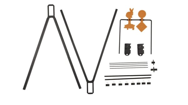 Features:Leg Kit Breaks Down to Convenient 16-inch Sections Chain Kit Includes All Hardware for Hanging Gong Targets Durable Self Healing Polymer Spinners 2 Target Paper Target Stand for Sight In and Training Includes Brackets for Gallery Expansion
