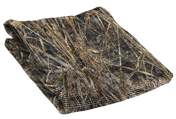 Made of a wide weave, thick fabric, the material provides a natural appearance while remaining pliable through extreme temperatures and weather conditions. Versatile netting made with fabric treatments to reduce shine and glare for multi-season use. This reversible camo coloring with 3D leaf-like foliage with the Camo print to keep your gear hidden. Vanish Tough Mesh Camo Netting makes a great concealment solution for boats, tree stands, and more. Overall fabric measures 12' long x 4.7' wide.