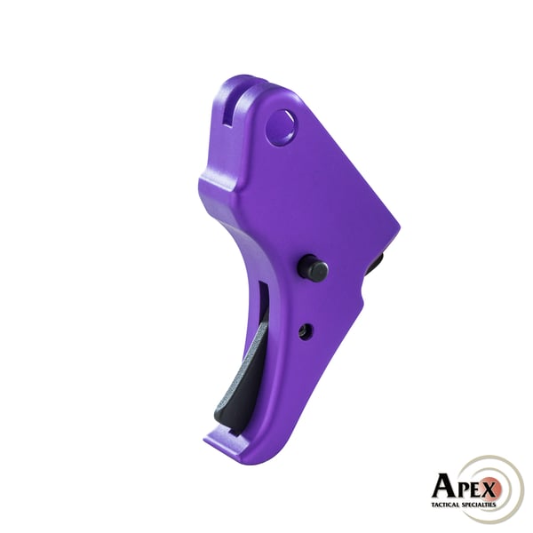 The Apex Action Enhancement Purple Trigger for the M&P Shield directly replaces the factory hinged trigger with a solid aluminum trigger body. The trigger reduces trigger pre-travel and over-travel by approximately 20%. It features a smooth face with a center mounted pivoting safety. The center mounted pivoting safety bar prevents unintended operation by creating a trigger block that will not disengage unless the shooter places their finger directly on the trigger face. The smooth face trigger causes the shooter to place their finger on the center line of the trigger and encourages trigger manipulation directly in line with the bore axis. The Action Enhancement Trigger is perfect for use with the M&P Shield already equipped with the Apex Duty/Carry Kit.