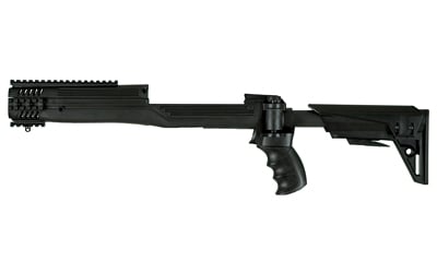 The ATI Strikeforce stock is an excellent choice for any individual who is looking to upgrade their Ruger Mini-14 or Mini-Thirty into a tactical dream, and the GEN2 version features a new buttstock design. This stock has a side folding mechanism that allows the stock to fold to the left of the receiver, and the rifle can still be fired even with the stock in the folded position. Its TactLite Gen 2 six-position adjustable stock provides smooth and secure stock adjustments with no movement on the buffer tube. Dual-sided quick-detach sling swivel attachment points allow you to attach any sling equipped with push-button QD sling swivels. The X1 pistol grip is specifically designed to reduce recoil, and it includes sure-grip texturing for increased control. Additionally, a removable and adjustable cheek piece allows for a tailored fit to get just the right cheek weld you need. Designed to fit most Ruger Mini-14 and Mini-Thirty rifles (some fitting may be required), the ATI Strikeforce GEN2 Stock brings the classic Ruger design into the twenty-first century!