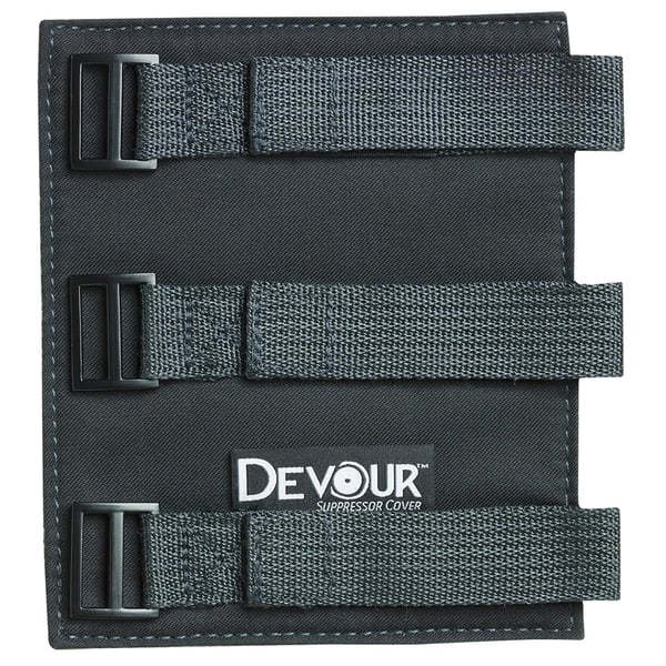 The Devour Suppressor Cover protects yourself and your gear against suppressor heat. The Devour cover also helps to mitigate optical mirage. As an added benefit, it protects your silencer from scratches and dings that come with normal use. It is easy to put on, allowing you to install or remove a suppressor while still hot. This prevents you from getting burned while letting you shoot comfortably from different positions.The Devour Suppressor Cover features include an industrial silica-coated, non-slip design held tight with adjustable straps. The carbon fiber felt is e-Glass 1800 F rated and a noncombustible material that is ideal for high-temperature protection.