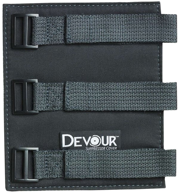 The Devour Suppressor Cover protects yourself and your gear against suppressor heat. The Devour cover also helps to mitigate optical mirage. As an added benefit, it protects your silencer from scratches and dings that come with normal use. It is easy to put on, allowing you to install or remove a suppressor while still hot. This prevents you from getting burned while letting you shoot comfortably from different positions.The Devour Suppressor Cover features include an industrial silica-coated, non-slip design held tight with adjustable straps. The carbon fiber felt is e-Glass 1800 F rated and a noncombustible material that is ideal for high-temperature protection.