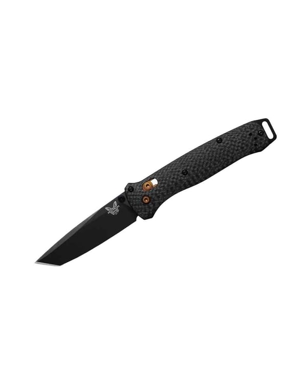 Built for those who venture far off the beaten path, the 537BK-10 Bailout is an ultralight folder that doesn’t compromise on strength. Designed for both tactical and everyday carry, it features a diamond-textured carbon fiber handle for reduced weight and a tough CPM-S90V tanto blade with a black Cerakote finish. Dark copper hardware adds a refined touch to this rugged performer, making it a capable companion for demanding trails and daily tasks alike.