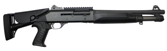 The M4 Tactical comes standard with a Picatinny rail for optics, a fully adjustable ghost-ring rear sight and fixed-blade front sight and a black synthetic pistol-grip style stock. An optional standard stock is offered. With features and reliability that do it for the U.S. military, the Benelli M4 is an excellent choice for your own home defense plan.