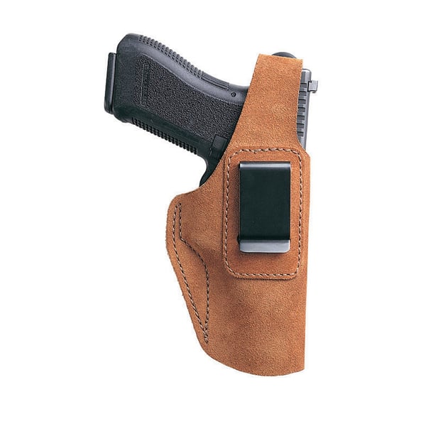 This inside the waistband holster has a thin profile design for concealability and a heavy duty 1-3/4 in. clip that keeps holster securely in place. It also has high ride open muzzle design, for side or crossdraw use. It has a double stitched seam in welt area for strength and an adjustable thumb break fits various firearms.