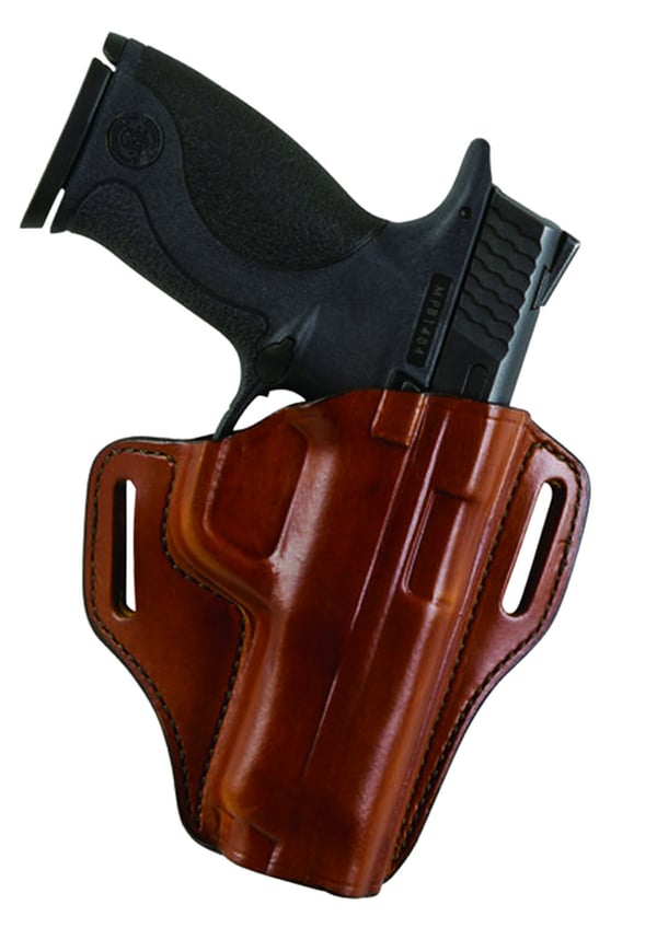 The 57 Remedy concealed weapon holster offers an open-top design for semi-automatics and small frame revolvers and provides quick and easy access to the gun. This model features deep contour molding on the front of the holster for improved comfort and to reveal the shape of the handgun it secures. Designed for hip or rear hip carry, the Model 57 is a leather belt holster of timeless style and quality.