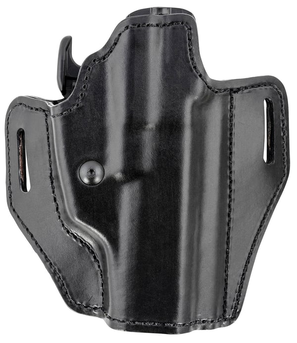 The Bianchi Assent is an open top holster with a high ride hip carry. Featuring a low-profile, contoured body-hugging design with GLS (Grip Locking System) an innovative technology that automatically secures the weapon when holstered, and releases it upon application of the middle finger with a standard shooting grip, for a more intuitive and safer release; customizable and adjusts to secure fit. Fits belt up to 1.50" wide. Fits- Colt 1911 & similar 5"; CZ 75 4.60"; FN FNS 9mm/40 5"; Glock 17L 6.02" all GEN 34/3 5.32", 41 GEN1-4 41 5.31"; Kimber 1911 & similar 5.50"; Ruger American .45 4.50"; Sig Sauer 1911 & similar 5"; S&W M&P 1.0/2.0 9L/4L 5", M&P 1.0/2.0 9L/40L Core 5"; Springfield Armory 1911S 5"; Walther PPQ 5", PPQ M2 5".