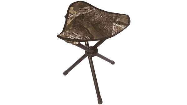 Steel three leg camo ground stool folds for easy carry. Has a 250lbs weight capacity.