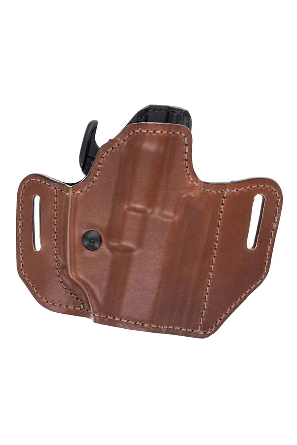 The Bianchi® 126GLS Assent™ is an open-top holster with a high-ride hip carry. The 126 offers a low-profile, contoured body-hugging design with GLS™ (Grip Locking System), an innovative technology that automatically secures the weapon when holstered, and releases it upon application of the middle finger with a standard shooting grip, for a more intuitive and safer release. Highly versatile, the 126GLS is customizable and adjusts to securely fit over 250 firearms. The 126GLS Assent combines the luxurious look and feel of a premium full-grain leather exterior with a sturdy laminate synthetic liner. The holster is available in Plain Tan or Plain Black finishes and fits 1.5” (38mm) belt widths.