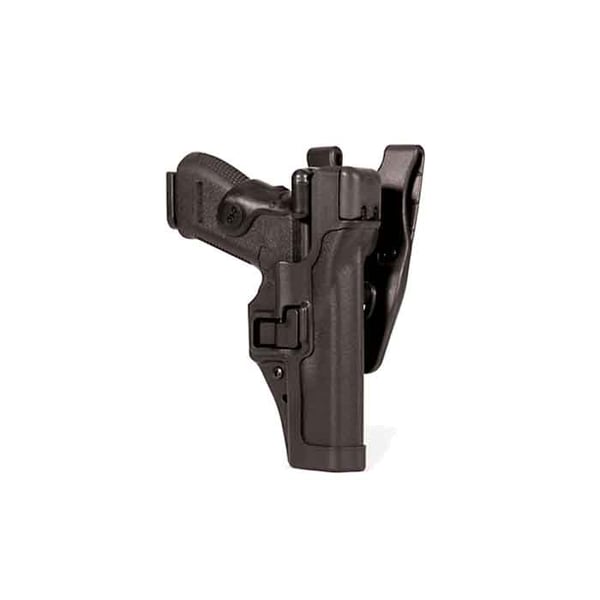 Level 3 retention holsters have long been the standard for law enforcement duty use. Now, thanks to the proven SERPA technology, you can draw your weapon rapidly under stress. SERPA patented Auto-Lock technology. Passive retention detent adjustment screw. Thumb-activated Pivot Guard for additional security. Full-length holster body protects rear sights. Includes innovative Jacket Slot Duty Belt Loop. Mid-Ride Duty Belt Loop and High-Ride Duty Belt Loop also available (sold separately).