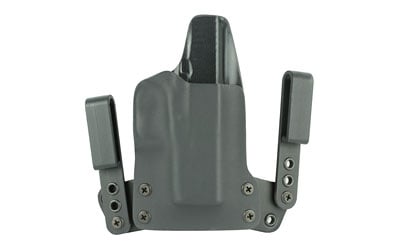 The Mini WING by BlackPoint Tactical is designed to be a minimized IWB holster which allows the user to carry comfortably all day long without sacrificing performance or durability. The pairing of KYDEX® and leather on this holster provides the functional benefits of a KYDEX® holster while providing the flexibility and comfort of a leather holster. The KYDEX® reliably retains your pistol without a break in or wear out period and it prevents the holster from collapsing when your pistol is drawn for easy one handed holstering. The mini wings give the holster flexibility to move with your body" making it comfortable for use all day" every day. Additionally" the mini wings were constructed to provide the user with a variety of different configurations for IWB carry with adjustments available to the cant and ride height of the holster.
