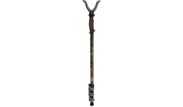 The Adrenaline Lever Lock Monopod Camo is ready for your UNKNOWN. The Adrenaline is designed for all hunting situations, from a turkey hunt out of a blind to chasing elk in the dark timber. Built for the utmost in portability, versatility, and stability, the adrenaline features lever leg locks, retractable metal foot spikes, and the patented Switcheroo® system. The Switcheroo system allows for quick changes between optics accessories and the USR shooting yoke.