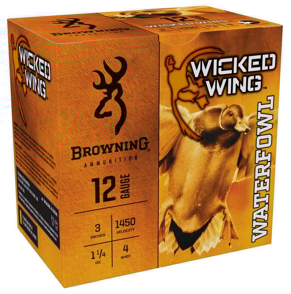Browning Ammo B193421234 Wicked Wing 12Gauge 3" 1 1/4oz 4Shot 25 Per Box/10 Case
