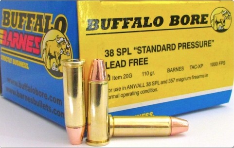 Buffalo Bore Ammunition 20G/20 Heavy 38 Special TACXP 110 GR 20Box/12Case For those wanting a load utilizing an expanding bullet, that penetrates very deep, this is it. These lead free, all copper Barnes TAC-XP bullets have great penetration in flesh and bone. Buffalo Bore Bullets are utilizing a flash retarded powder in this load, so that the vision of the shooter will not be significantly impaired should he be required to drop the hammer in low light. Roughly 95% of all civilian shootings in the US happen in low light when the criminal element is most active. Not being blinded by your own gun fire can be a significant advantage.