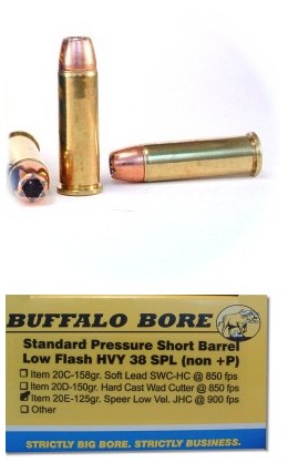 BUFFALO BORE 38 Special 125Gr LV JHP (900FPS/ME 225 ft lb) 20rd