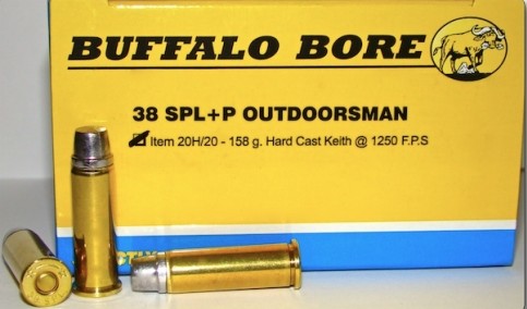 This load was designed for those who need a deep penetrating .357 Magnum or .38 SPL load to be fired from lightweight alloy .357s and any .38 SPL revolver. Lightweight alloy .357s develop multiple problems when firing our 180gr. .357 Magnum hard cast turbocharged (Item 19A) ammo or any make of full power .357 ammo. Yet many folks want a deep penetrating “outdoor” type of load for their lightweight pocket .357s, so here it is. Whether you are shooting gators or bears in the head, this load utilizes a hard flat-nosed bullet, at sufficient velocity, even from 2-inch barrels, to fully penetrate either.