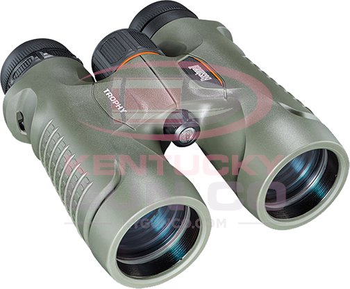 This Bushnell Trophy binocular is ideal for hunting at long ranges and wide fields of view. The binocular features fully multi-coated lenses for maximum light transmission and optimum brightness. It is made of a heavy-duty, 100 percent waterproof/fog proof construction with a large center-focus knob for precise focusing. Included is 2 step twist-up eyecups that allows quick adjustments for optimum eye relief.