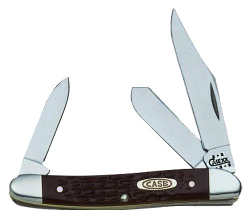 The Stockman knife is utilitarian by design, featuring an impact-resistant brown synthetic handle with jigged texturing and pen, clip and spey blades made of stainless steel. Case Tru-Sharp Stainless Steel is a special high-carbon steel that hold an edge longer than conventional steel and offers extraordinary blade strength and corrosion resistance. The medium size is 3-3/8" when closed. Since 1889 every Case Knife is made with pride in the United States.