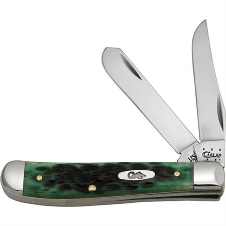 Case Cutlery - Mini Trapper Bermuda Green. Model CA09772. 6207SS pattern. 3 1/2" closed. Stainless clip and spey blades. Pocket Worn Bermuda green bone handles with nickel silver bolsters and inlay shield.