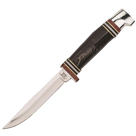 - Jigged Buffalo Horn handle; Aluminum guard and end cap