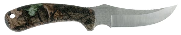 The Case Camo Ridgeback Hunter is a Blackie Collins design. The fixed blade features a lightweight synthetic textured handle for a sure grip. The durable fixed knife has a full tang design for added strength and thumb grooves on the back of the blade for improved grip. The Skinner blade is commonly used for skinning purposes or field dressing. The knife is perfect for hunting, everyday situations or hiking. Made in Bradford, PA, USA from domestic and imported materials.