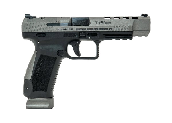 The Canik TP9SF comes with industry standard dovetail sight cuts that are compatible with a large variety of aftermarket sights. The tungsten grey cerakote over phosphate finish and AFC magazine complete the sleek look of this pistol, which also includes 4 Red Dot interface plates and an ambidextrous cocking lever.