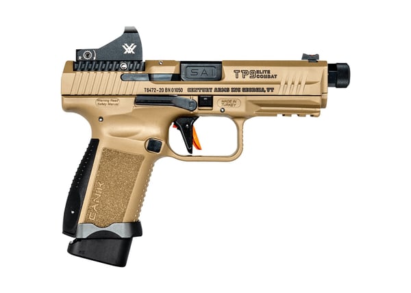 The TP9 Elite Combat comes with an optics-ready slide, an Enhanced Trigger, advanced coatings on all steel and internal parts, ships with two magazines (one with an aluminum +3 extension), plus a retention holster. Every Elite Combat comes standard with performance upgrades by Salient Arms International. The TP9 Elite Combat represents a whole new generation of Canik handguns.