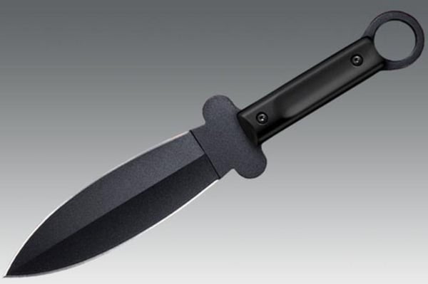 But as cool and useful as the ring is it's the broad leaf shaped blade and Polypropylene handle scales that ultimately make impressions. Made from one solid piece of 1055 Carbon steel, with a tough spring temper, the twin hollow ground edges of a the Shanghai Shadow make it superb cutting and thrusting weapon. It come fully sharpened and includes a heavy-duty, black Cor-Ex sheath.