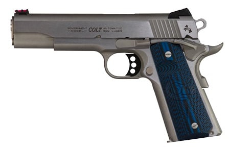 The Stainless Steel Colt Competition Pistol™ offers an upgraded alternative to our race-ready full size Government Model® Competition Pistol™. It's packed with all the great features that made our blued Competition Pistol™ the gun that put the competition on notice. The stainless version offers the resilience and appeal of a stainless steel slide and frame, while maintaining those iconic blue Colt branded G10 grips. The Stainless Steel Colt Competition Pistol™ offers firearms enthusiasts yet another opportunity to add a great shooting, high quality pistol to their collection.