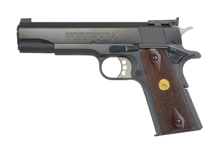 The Colt Gold Cup is known as the finest shooting semi-automatic in the world, and is the standard for competitive guns. The first Colt Gold Cup pistol was introduced in the late 1950’s to give competitive shooters a gun to take directly from the dealer’s showcase to the firing line. Colt Gold Cup pistols have been used to compete in local club matches through the National Matches at Camp Perry. It features an Adjustable Wide Trigger, National Match® Barrel, Adjustable Target Sights, and many other refinements as standard.