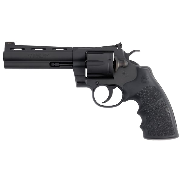 The Python is back! Building on Colt's Snake Gun legacy, the legendary revolver returns in carbon steel. The Python features modern stainless steel alloys and a re-designed rear sight. Thirty percent more steel beneath the rear adjustable target sight gives you a stronger revolver and more robust shooting experience. A recessed target crown, user-interchangeable front sight, and Walnut grip with the iconic Colt medallion make this a gun you'll want to shoot AND show off.