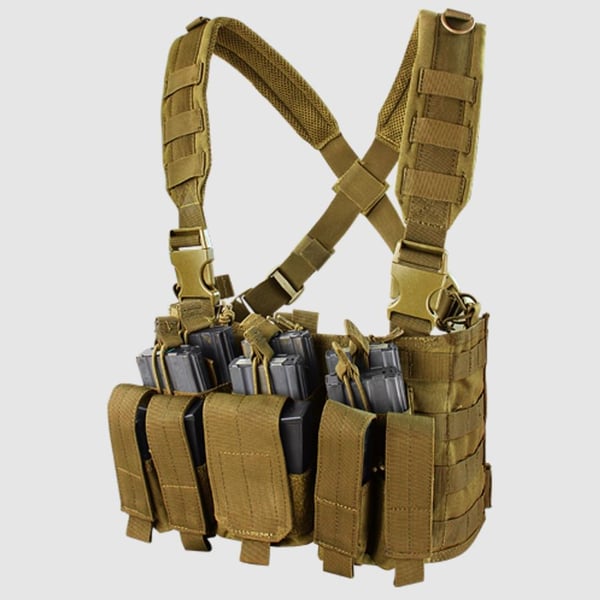 The Condor Recon Chest Rig is designed with built-in stacker/kangaroo style mag pouches to allow the user rapid, seamless access to mags for faster reloads with up to six AR/M4 mags and six pistol mags. The adjustable and removable flaps on the pistol pouches also allow the user to keep a knife, multi-tool, or other small accessories close at hand while training or on duty. This Condor Recon chest rig setup also features an interior mesh pocket for safely storing items close to the body. Swivi-Lockster quick-release buckles allow you to remove the chest rig quickly and easily when necessary. With grommets for drainage and padded cross-back shoulder straps, this Condor chest rig also helps you stay comfortable and dry.