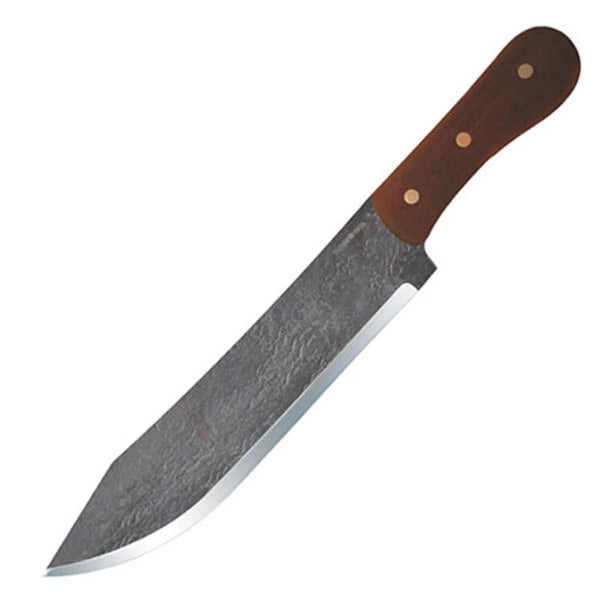 Hudson bay knife with 8 1/2 in. 1075 high carbon steel blade with Condor classic finish and hardwood handle. 13 in. overall length, includes leather sheath.
