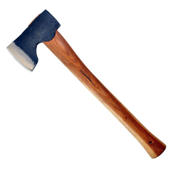 Woodworker axe comes with 6 13/16 in. head nade from 1045 high carbon steel and condor classic finish. American hickory handle. Overall length is 18in. Includes leather sheath.