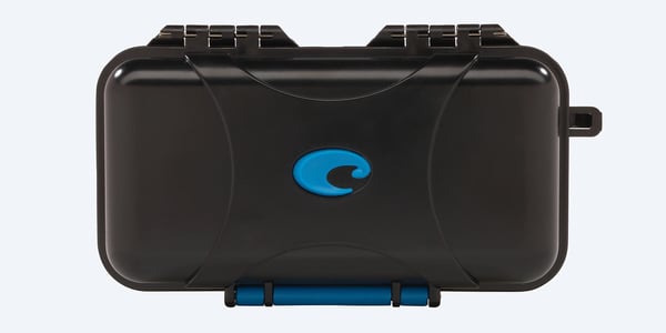 You were built for the water but your keys and wallet weren't. The water-resistant Costa Dry Case features an interior rubber liner, pressure valve and side clip. Perfect for the outdoors! You can link to a backpack or secure to a latch on a boat. Fits most phones. 3.02" H x 7.84" W x 4.33" D. Sunglasses not included.