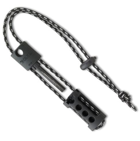 The Spark'N Sharp designed by Tom Stokes features a sliding plate that moves to expose either the sharpener or the steel striker. The fire steel snaps in place to form a streamlined bundle that stores easily in any pocket, bug out bag, go bag or survival kit. All parts of the fire starter are connected to a lanyard, so you never have to worry about losing pieces of your tool. The tungsten carbide knife sharpener will keep your blade honed to a working edge and the magnesium rod fire starter will produce sparks until your troubles go up in a cloud of smoke.