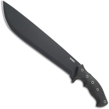 The Chanceinhell™ is a beefy fixed blade survival machete designed by award-winning custom knife-maker Ken Onion of Kaneohe, HI to be tough, strong, and work like an ox. A thick, carbon steel blade has a black powder coat that is durable in extreme environments. Built for hard use, it's easy to sharpen after you've put the finishing touches on your handmade hotel in the woods.