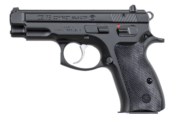 At 5" tall with a barrel length of just under 4", the Compact model shaves a little more than 3/4" off the length and about 1/2" off the height of the full-size CZ 75. Its reduced size allows it to readily disappear under regular clothing. The CZ 75 DA/SA action with a manual safety lever provides the user with two options for carry: hammer-back with the safety on for single action operation or manually decocked for a double action first shot with no need to remember to take off the safety before firing. Because the 75 Compact retains the steel frame of the original 75, only 2.4 oz of weight is lost, making it the softest-shooting compact in the CZ 75 line.